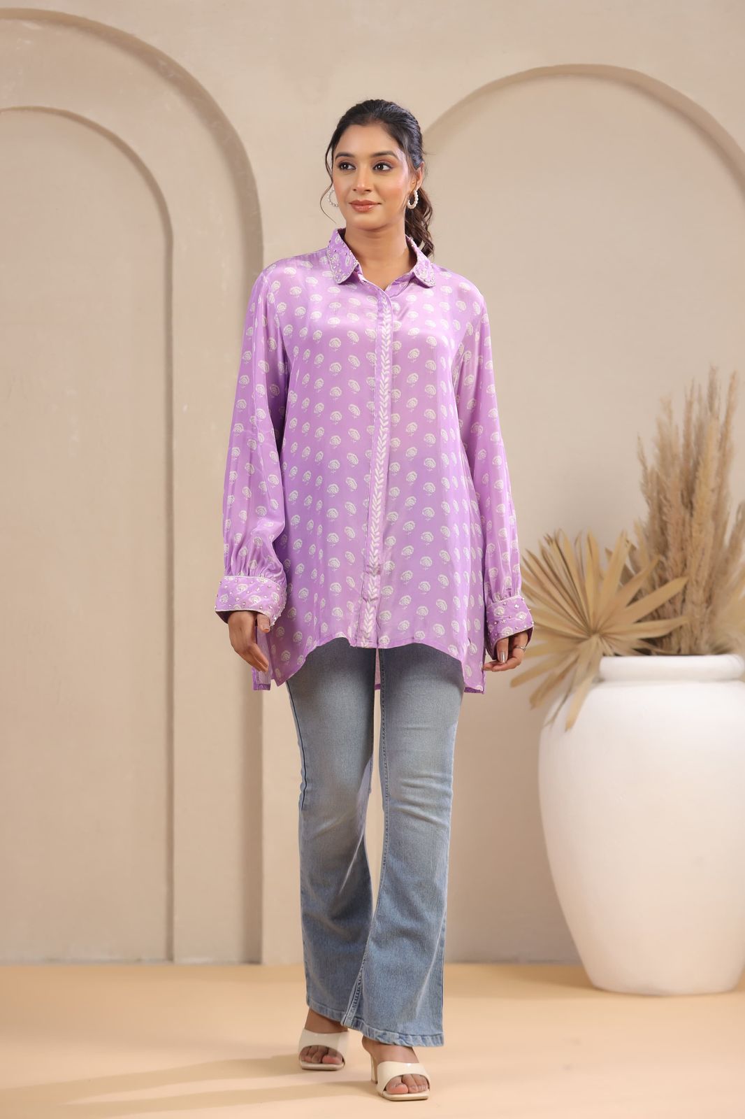 Elevate your ethnic wardrobe with this elegant lavender suit set crafted in premium muslin silk...