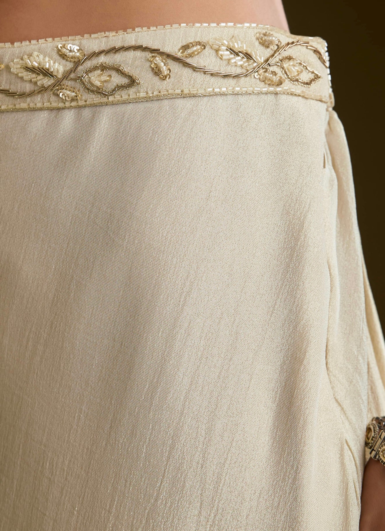 Ivory Mirror-Embroidered Tissue Silk Indo Western