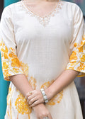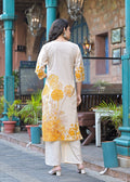 Elegant Off-White & Yellow Cotton Floral Suit Set with Plazo
