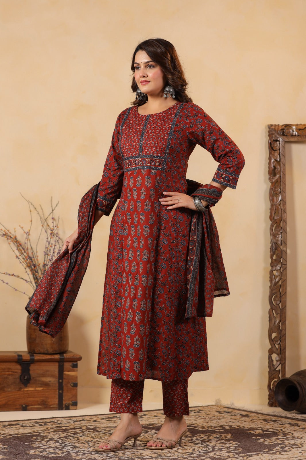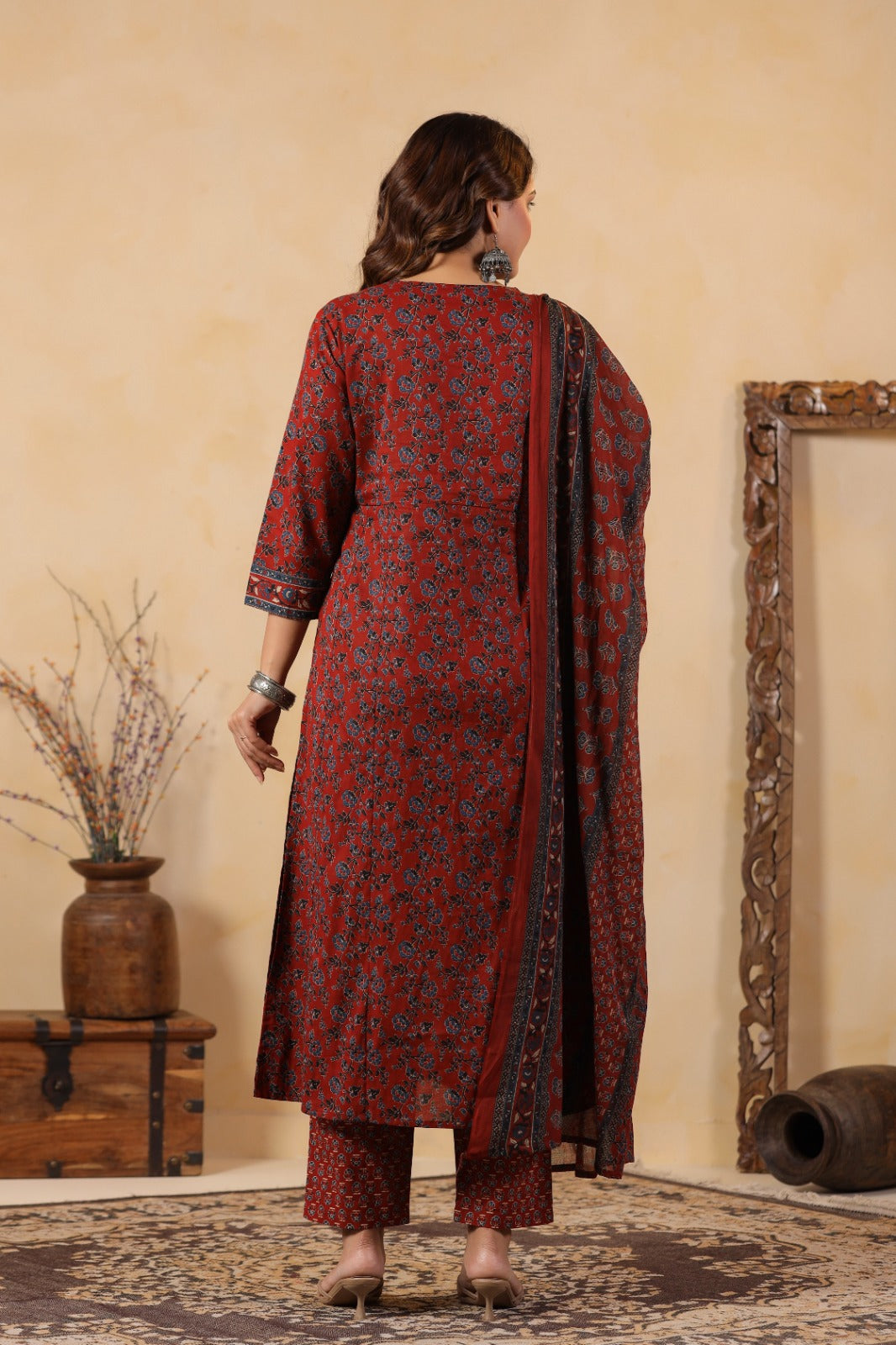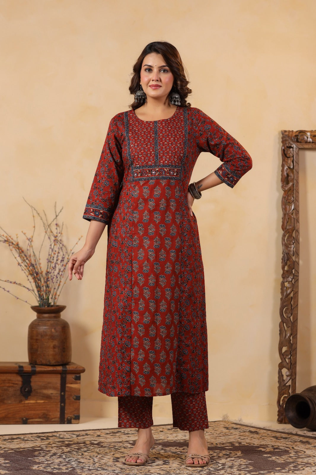 Step into timeless elegance with this beautifully crafted rust-toned cotton kurta set. Designed for comfort and style, it’s a perfect blend of traditional aesthetics and modern sophistication.