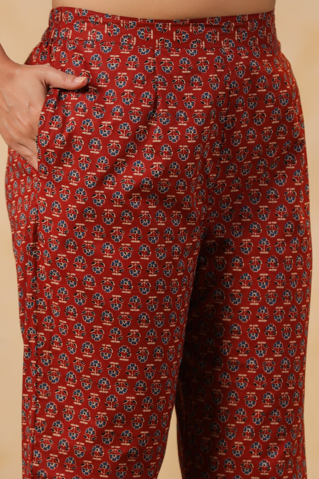 Pattern: Intricate hand-block inspired motifs all over, with a contrasting border design on the dupatta and neckline detailing