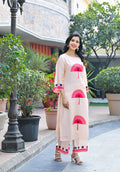 Make a statement with this graceful peach cotton kurta set, designed for effortless elegance and comfort. Crafted from premium cotton fabric, this set features a straight-cut kurta with eye-catching red prints, paired with matching palazzo pants, making it a perfect choice for both casual and festive occasions.
