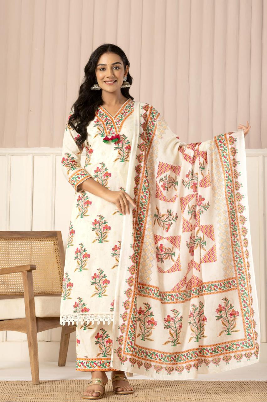 Elevate your ethnic wardrobe with our beautifully crafted Cotton Suit Set, designed for effortless elegance and all-day comfort. This three-piece ensemble features: