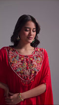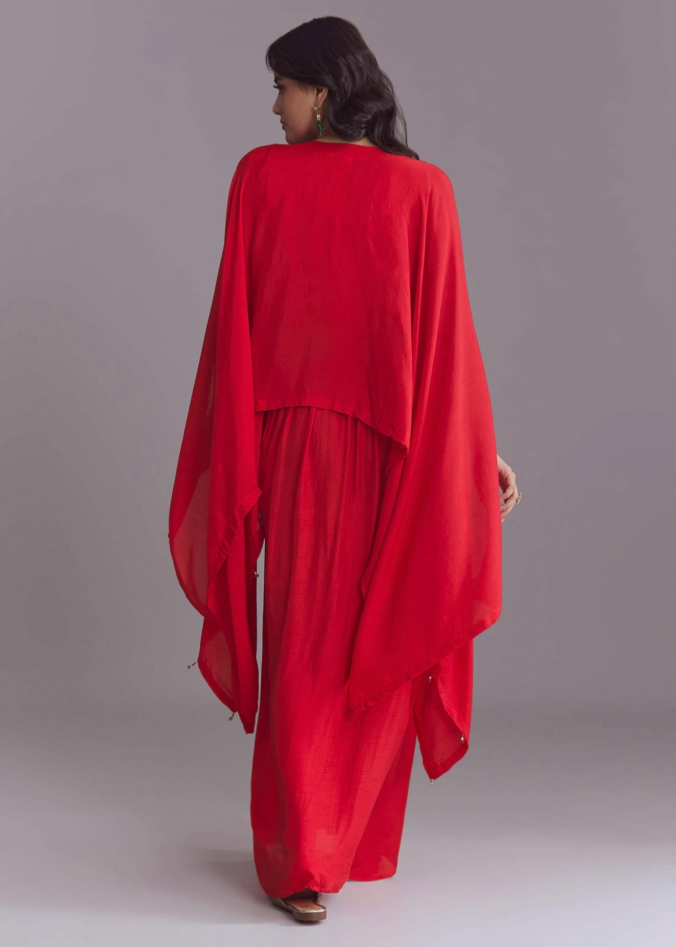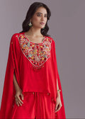 Crimson Charm – Embroidered Silk Crepe Cape Set