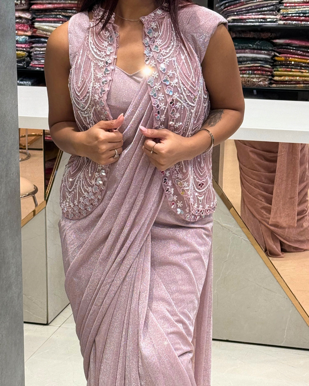 Blush Elegance Pre-Draped Saree with Embroidered Jacket